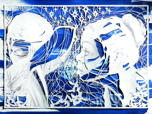 As we open ourselves to the experience of the image, focus on your breath. If you find yourself not knowing what to think, or trying to figure out what the art means, remember that you are invited to simply be an observer. What do you see? What is most striking to you about this piece? What parts of the image are your eyes most drawn to, and what parts did you quickly brush by? How is the imagery cohesive with the scripture? What emotions emerge for you when you observe this piece?