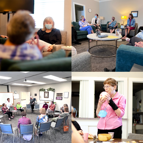 Mayflower's Widows Support Group provides comfort and encouragement to those learning to live alone again. They aim to create a welcoming, safe space where those dealing with grief can connect, share experiences, offer support, laugh and cry together, and create a community of meaningful relationships.